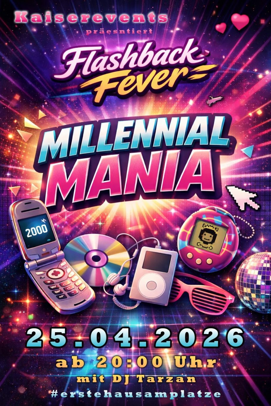 Flashback Fever – Millennial Mania ist das dritte Event unserer Partyreihe und bringt euch diesmal die größten Sounds und schönsten Erinnerungen der Millennial-Ära zurück auf die Tanzfläche.